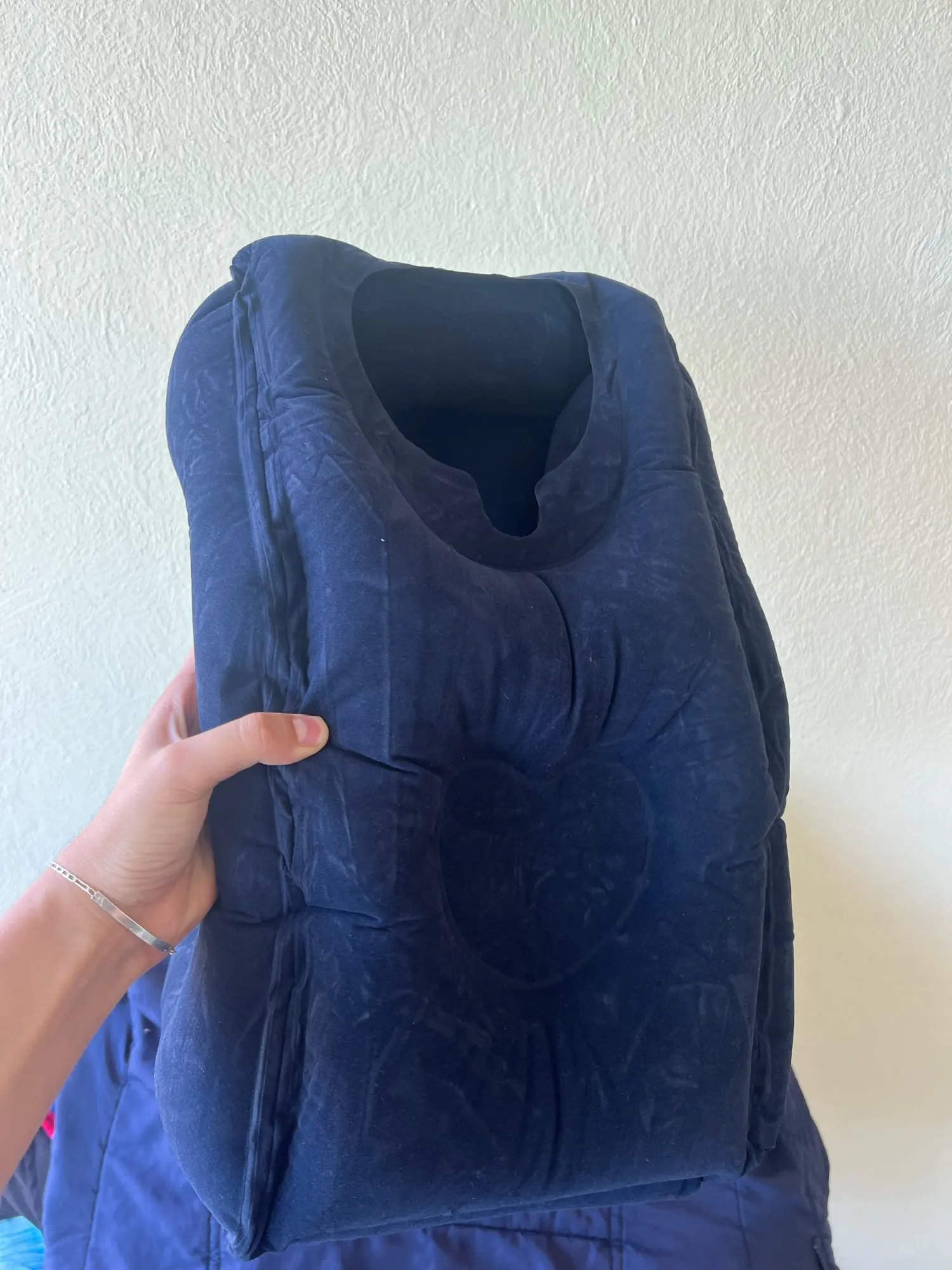 ThisInflatable Cuddling Pillowis designed to be yourperfect travel companionanywhere you go! Itsergonomic designprovidesgreat support and comfort to your entire bodyduring your long journeys. It can easily beinflated without using a pumpand isfoldable to the size of a palmso you can take it with you no matter where you are!