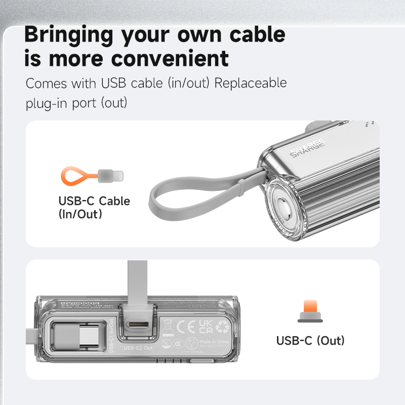 Switch effortlessly between USB-C and Lightning. No extra cables needed—just snap and charge!
